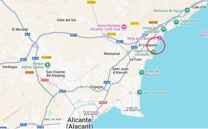 El Campello está a 30 km del aeropuerto.